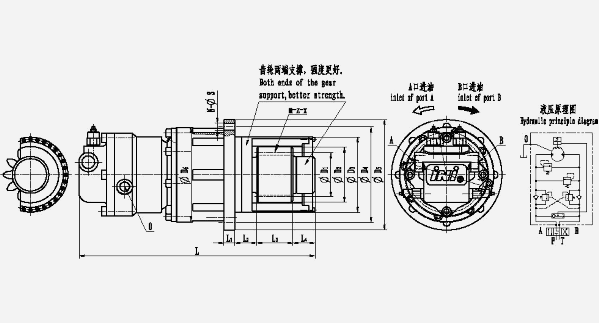 تم تطوير محركات الدوران الهيدروليكية من سلسلة IYH ذاتيًا مع حقوق الملكية الفكرية المستقلة. وهي تتكون بشكل أساسي من المحركات الهيدروليكية، والفرامل الهيدروليكية متعددة الأقراص، وعلب التروس الكوكبية من النوع C، والموزعين. يمكن للمحركات الهيدروليكية